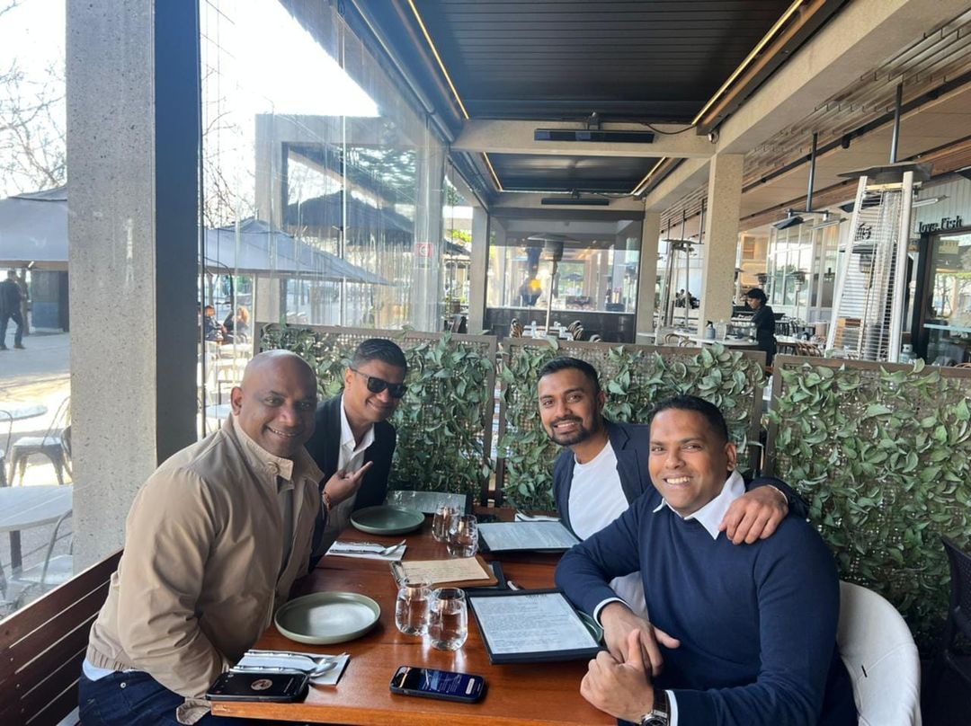 අමාත්‍ය හරීන් ප්‍රනාන්දු, සනත් ජයසූරිය සහ මහාචාර්ය අර්ජුණ ද සිල්වා සිටින ආකාරය දැක්වෙන ඡායාරූපයක් ධනුෂ්ක ගුණතිලක විසින් සමාජ මාධ්‍ය වෙත මුදාහැරලා තියෙනවා.